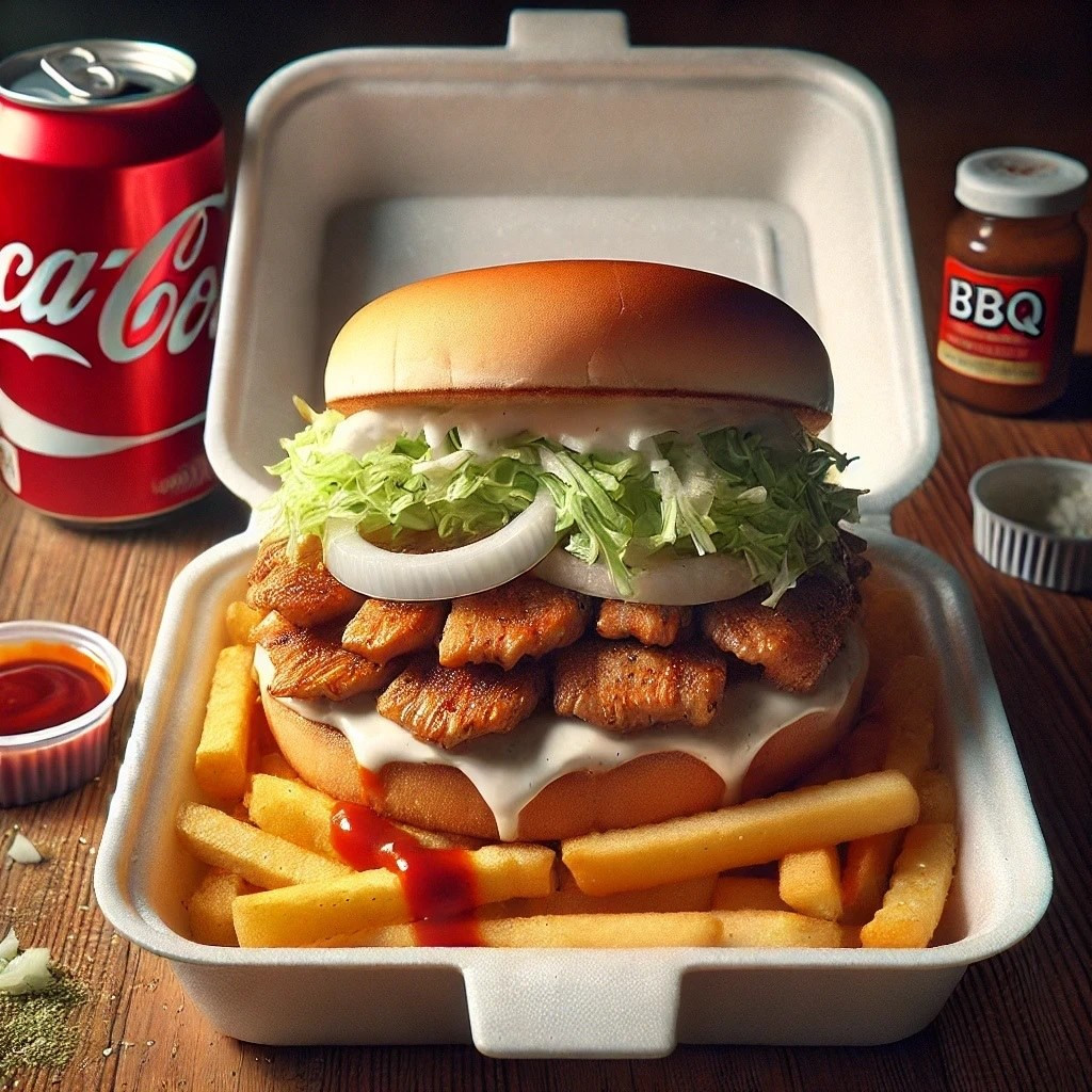 Experience the perfect fusion of Turkish doner and classic burger goodness! Choose from juicy, grilled doner meat—chicken, lamb, or a mouthwatering combination of both—piled high on a soft, toasted bun. Topped with melted grated cheese, crisp lettuce, and freshly sliced onions for that extra crunch. Customize your Kebabger with two sauce options to suit your taste, from tangy to spicy. For the full experience, upgrade to a combo that includes golden, crispy fries and an ice-cold can of drink. Perfect for a satisfying and flavorful meal!