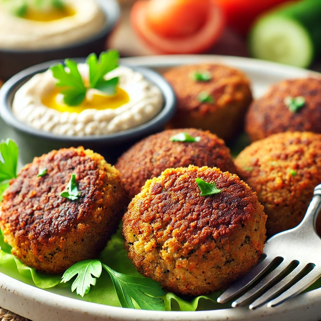 Our homemade falafel is crafted daily from a delicious blend of ground chickpeas, fresh leeks, celery, garlic, finely chopped parsley, onions, and coriander, mixed with a special blend of herbs and spices. Freshly cooked every day and expertly fried to a crispy golden perfection, it offers a flavorful and satisfying bite. This falafel is gluten-free, dairy-free, soy-free, nut-free, and egg-free. We recommend pairing it with hummus, garlic yogurt or sweet chili sauce for the perfect taste experience.