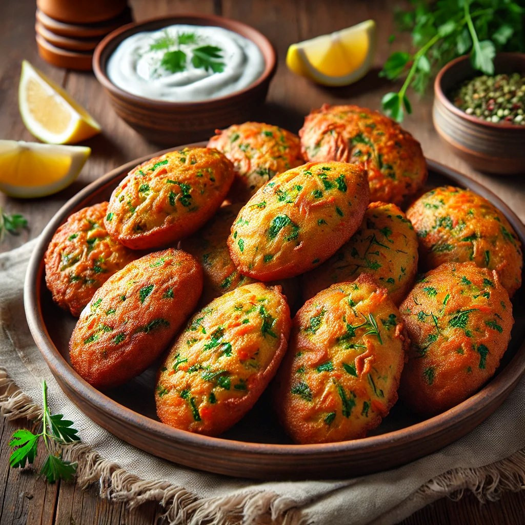 A Turkish zucchini fritter made with delightful blend of grated zucchini, finely chopped spring onions, capsicum, garlic paste, grated carrots, and pumpkin, mixed with corn flour, fresh dill, herbs, and spices. Lightly fried to a golden crisp, this savory fritter is gluten-free, dairy-free, soy-free, nut-free, and egg-free. A perfect vegetarian option with rich flavors and a satisfying crunch. Recommended with yogurt, garlic yogurt, or tzatziki dip for an extra burst of flavor.