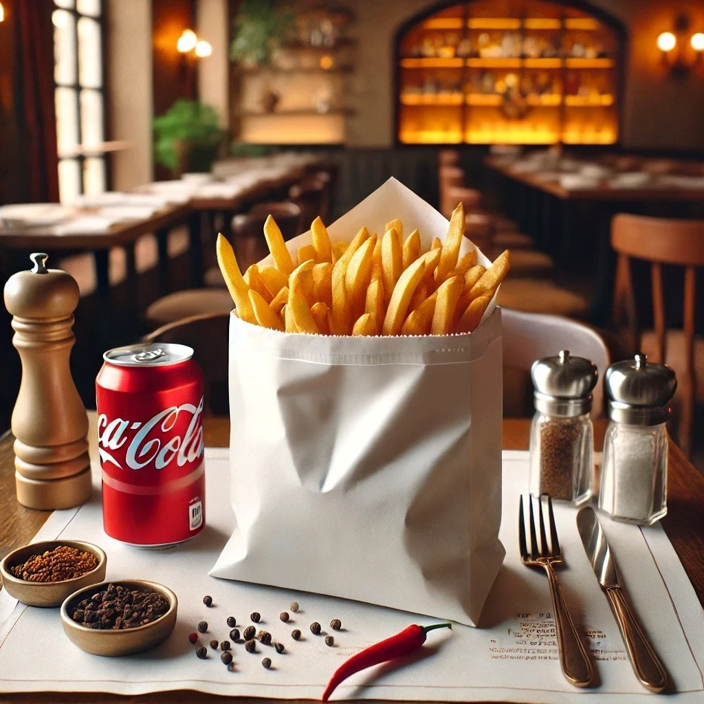Crispy, golden shoestring fries made from skinless potatoes for the perfect crunch and tender interior. Our fries are expertly cooked to achieve that ideal golden-brown finish, making them a classic favorite to complement any meal. Lightly seasoned and served hot, these delicious fries are sure to satisfy your cravings and enhance your dining experience. This fries served with a refreshing can of your favorite drink. The perfect quick and tasty pairing for a satisfying snack or any meal addition in our menu.