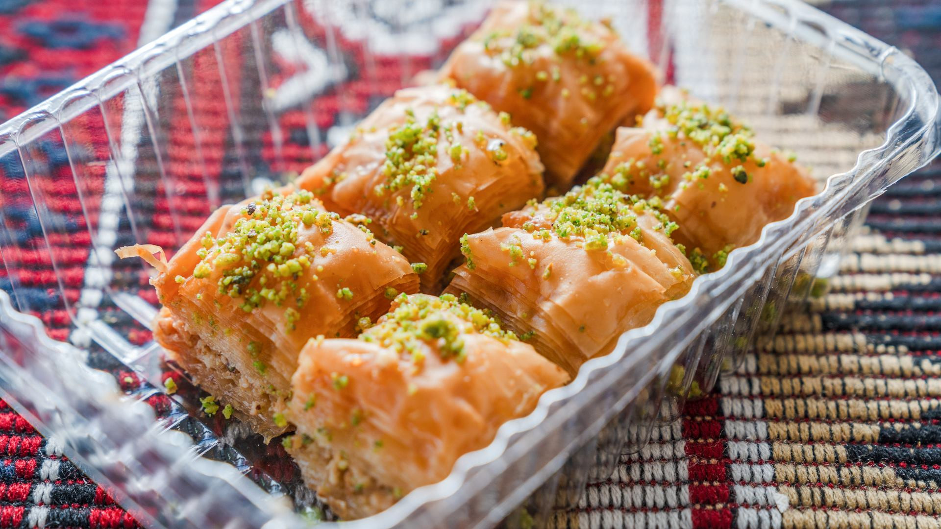 Delight in our Baklava, thoughtfully presented in a convenient container featuring six perfectly crafted pieces. Each layer boasts delicate, buttery phyllo dough enveloping a rich blend of premium nuts such as walnuts and pistachio pieces, subtly spiced and sweetened with syrup. Baked to a golden perfection, this classic Mediterranean dessert offers a harmonious balance of flaky textures and decadent flavours. Ideal for sharing or savoring on your own, baklava is a timeless treat that promises every bite is pure bliss.